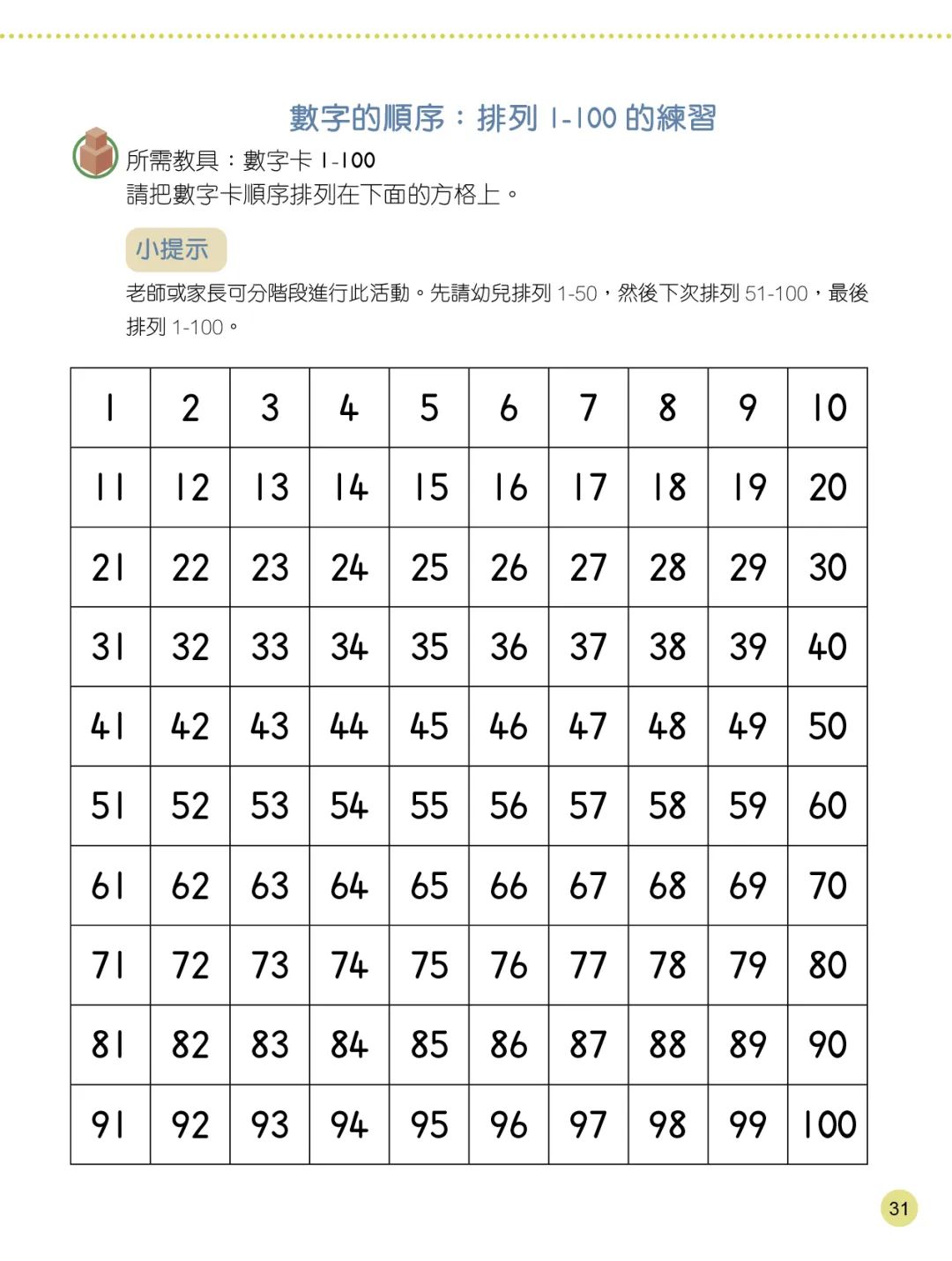 把數字卡放在100數字板上,幼兒可以學習100以內數字的順序。