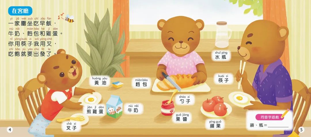 設置多種生活場景,幫助小朋友在真實情景中練習運用漢語拼音。
