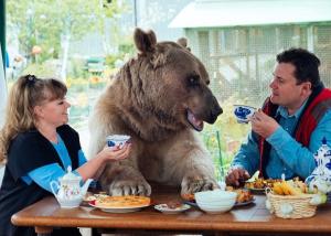 【橙訊】不少人都會被熊的龐大體型所嚇怕,不過俄羅斯一對夫婦飼養了一隻約300磅巨熊,並與牠一同生活了23年,每天都會與牠一起熊同枱食飯、而且更會不時親密「熊抱」,他們就如把巨熊當成自己小孩樣照顧。