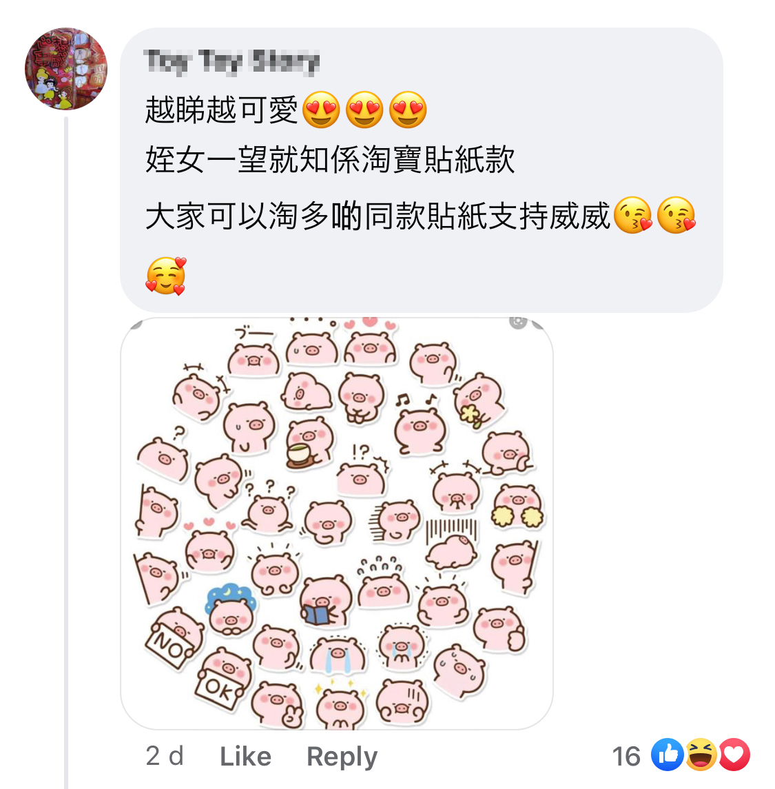 日前有忠粉發現威威右手臂有兩行小豬紋身,並分享至「荃灣鮮肉威威應援團」專頁,從相中可見兩排紋身位於手袖對落,剛剛好不被手袖覆蓋,小豬紋身圖案有不同表情及動態,相當有心思,一眾「威威豬」即大讚威威言出必行,留言讚賞:「好可愛」。