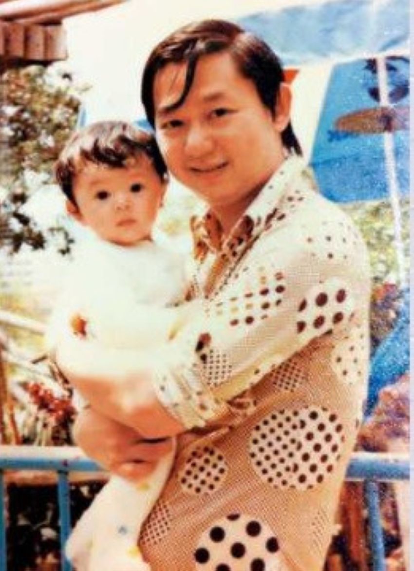 年輕時的李少光抱住仍是嬰兒期的李霖恩。