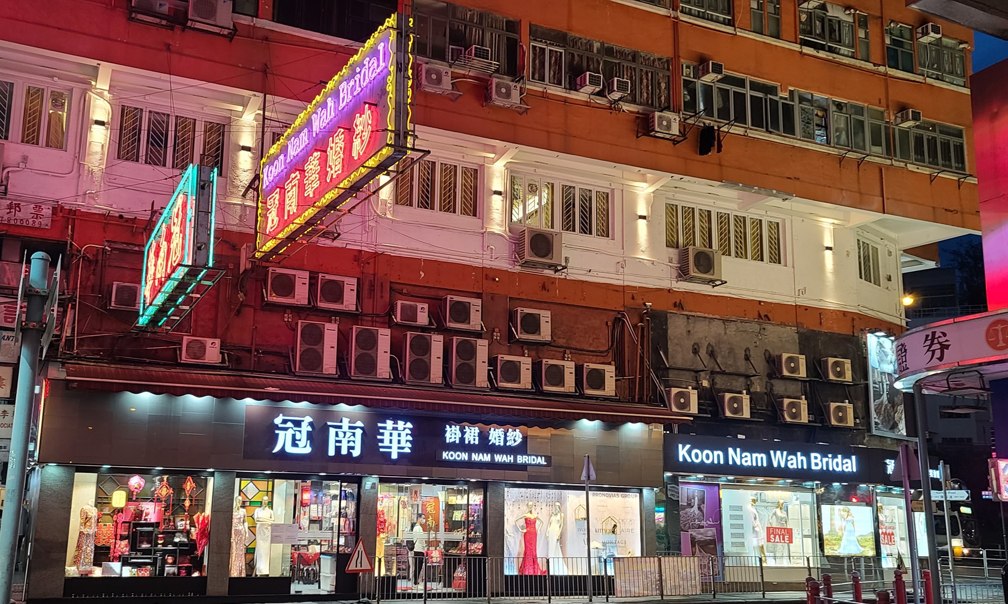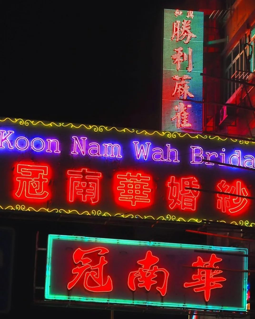 「冠南華」早年於廣州創立,1920年代正式進駐香港,在香港經營褂裙業務超過60年,最初主要經營床上用品,後來成為裙掛專門店,其後亦順應潮流加入西式婚紗。店舖上方的兩個大型霓虹燈招牌屹立近半個世紀,由於招牌成雙成對,加上寫有「婚紗」字眼,故有「最幸福霓虹燈」的稱號。