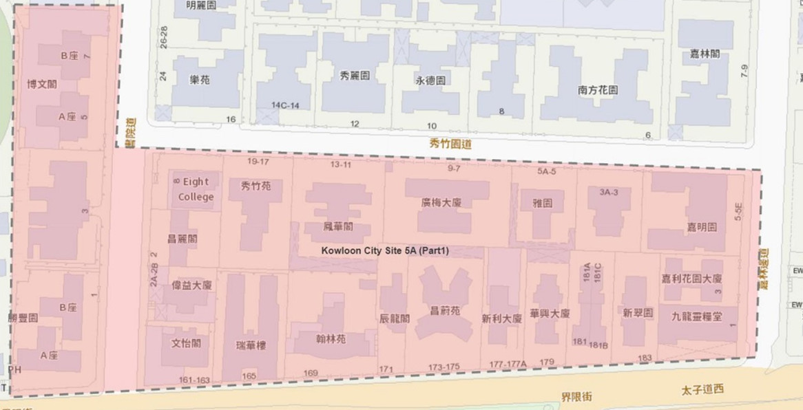 九龍城區 — 海逸豪園(海逸灣、悅濤灣、翠堤灣、綠庭軒及玉庭軒)及秀竹園道和界限街附近一帶住宅(見下圖)