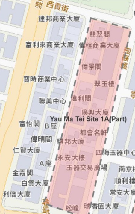 油尖旺區 — 富榮花園、海富苑、柏景灣、帝柏海灣及廣東道和偉晴街附近一帶住宅(見下圖)