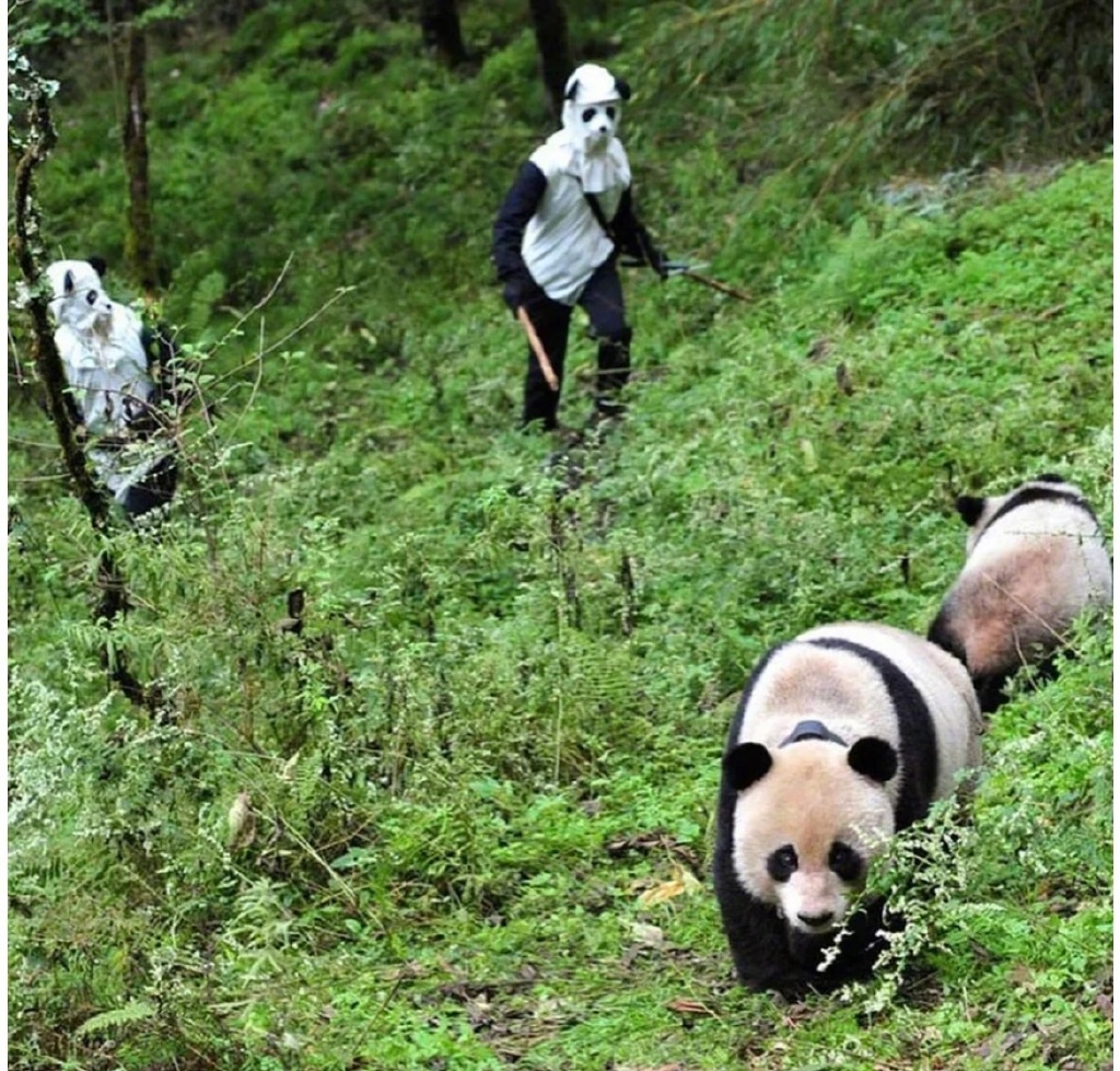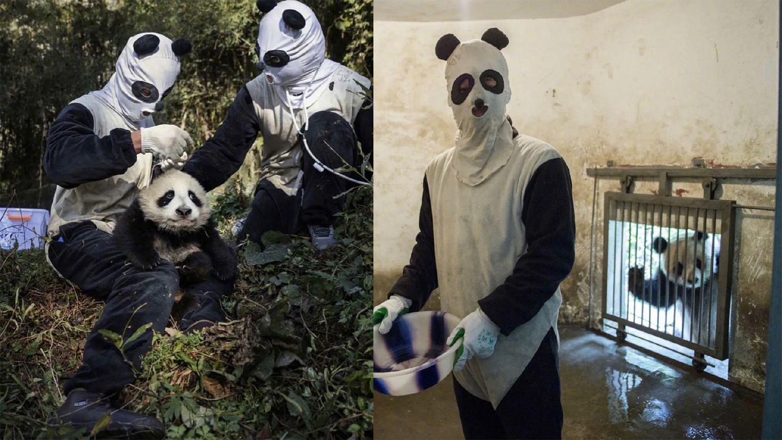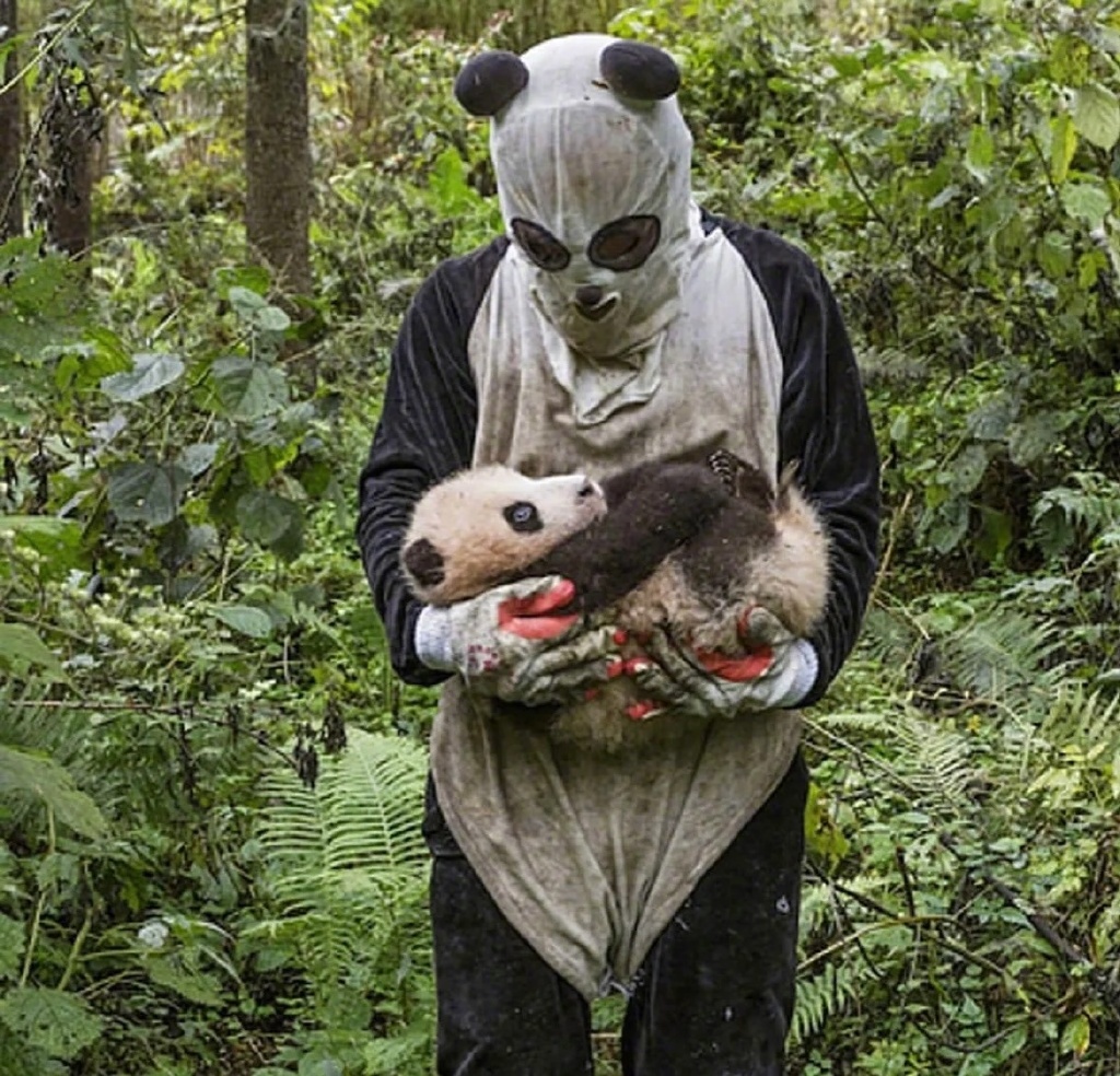 中國一直致力保育大熊貓,更盡力協助熊貓重回野外生活。為了讓熊貓適應野生生活,並且忘記人類,牠們從小便會由穿熊貓裝的工作人員照顧,不過奇怪的裝扮令網民表示好笑又詭異。
