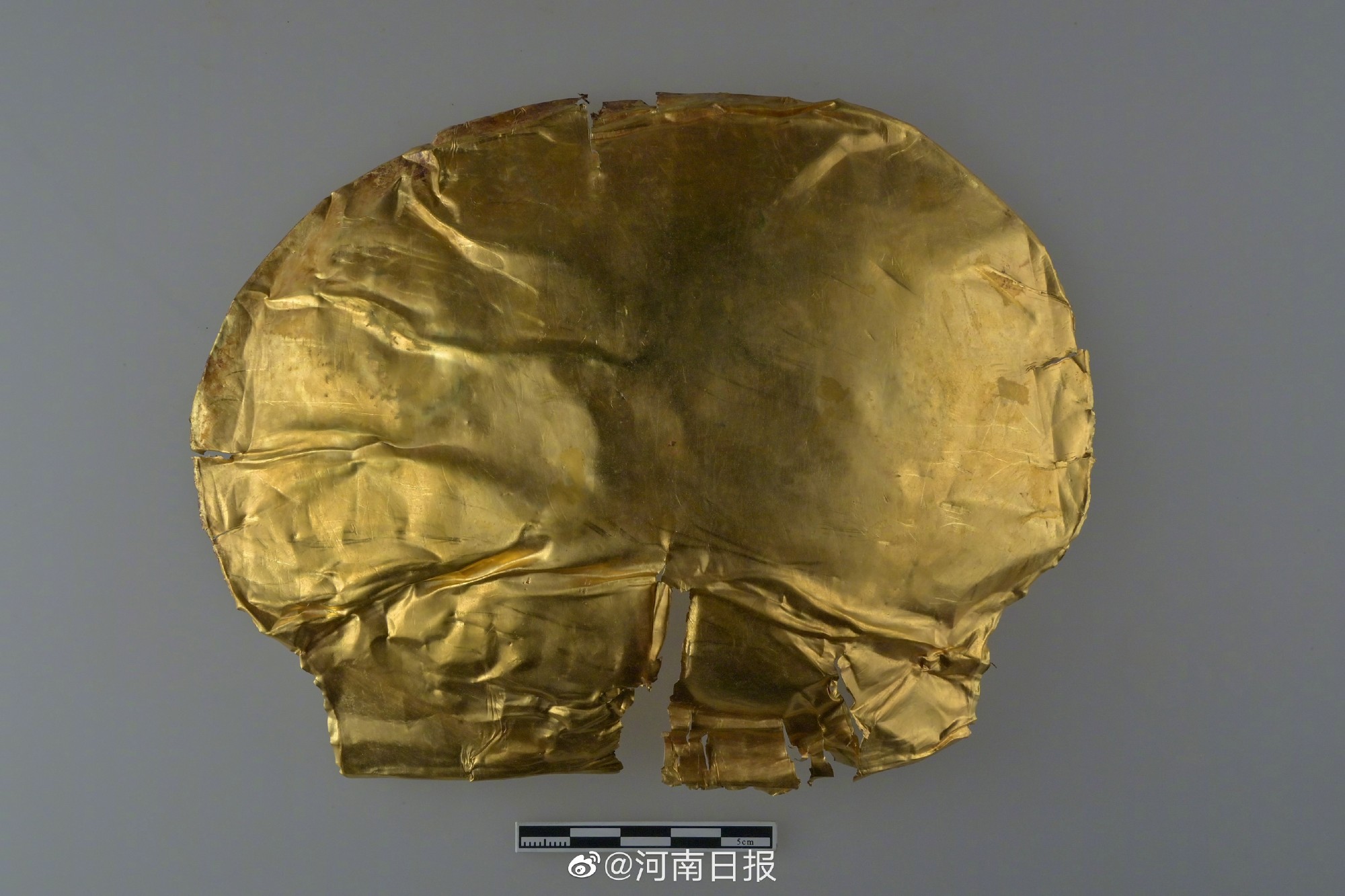 鄭州商都遺址一處商代貴族墓葬區出土金覆面。