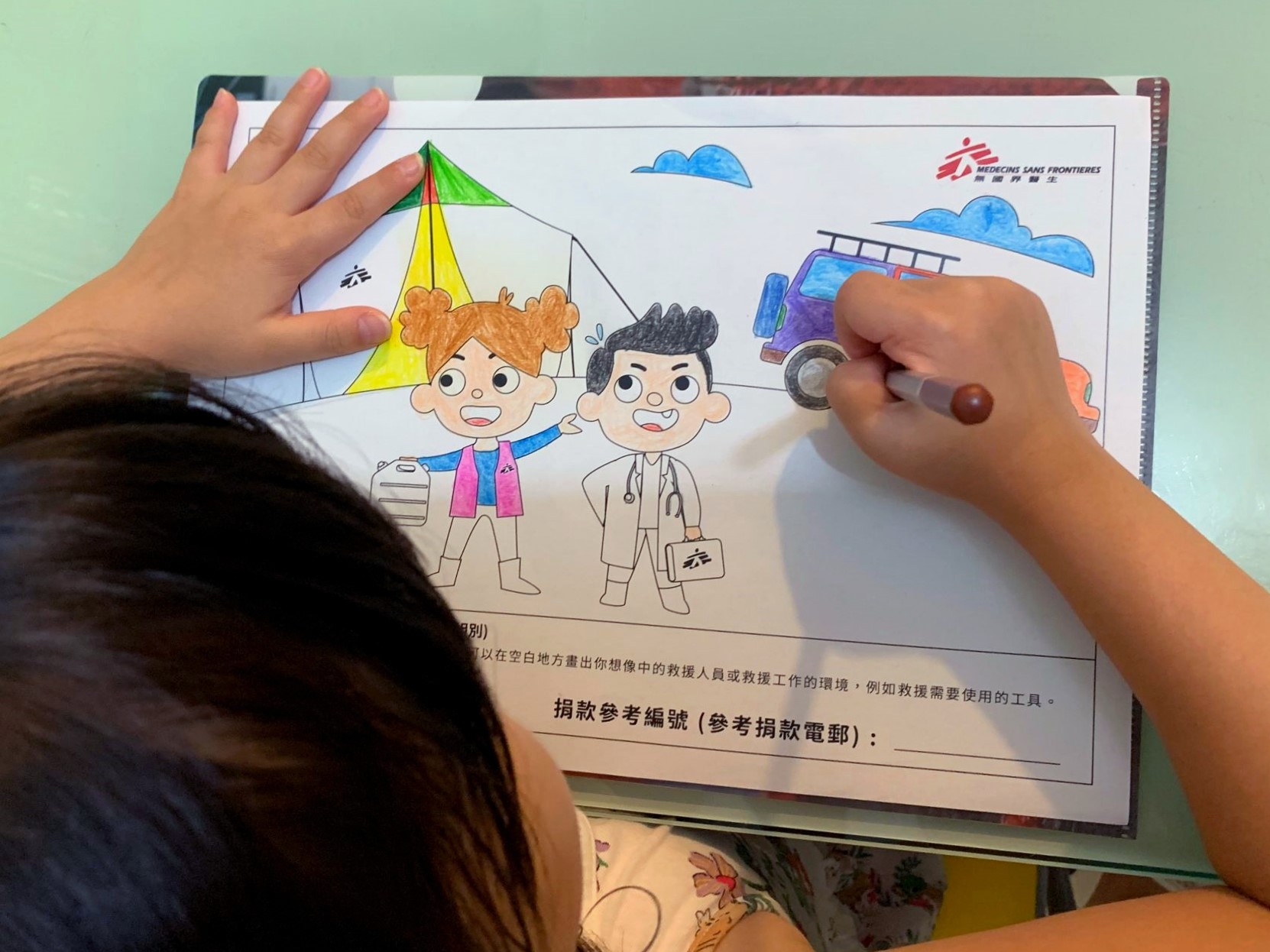 無國界醫生開展「小小救援伙伴」計劃以來,舉辦了不同活動,亦推出不少教學資源,讓孩子從不同途徑了解無國界醫生的人道救援工作,開拓視野之餘,亦有助培養他們的同理心,建立良好的品格。今年9月,「小小救援伙伴」首次舉辦填色比賽,只需捐款港幣120元或以上即可參加。