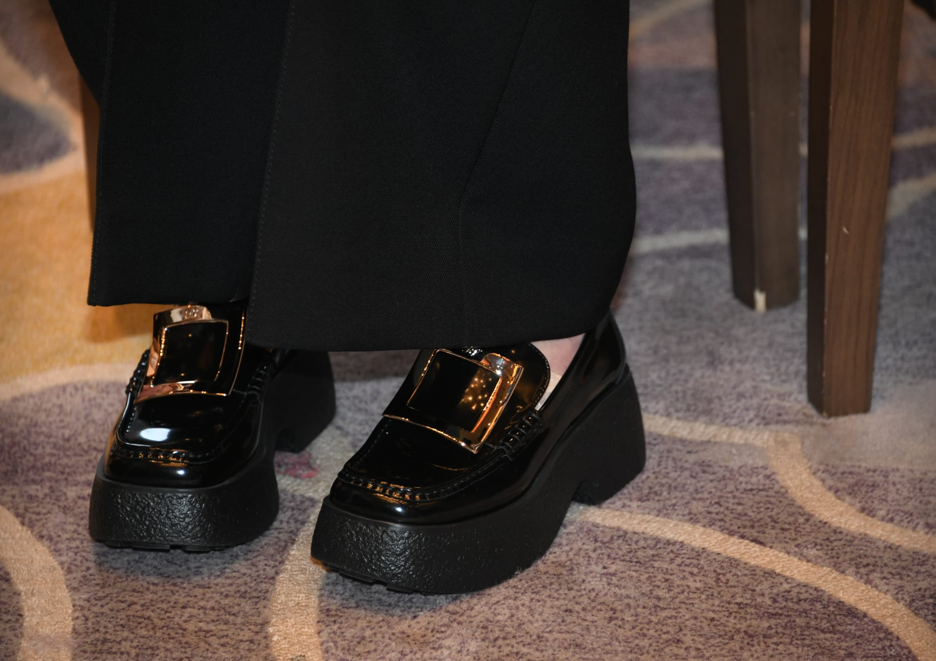 鞋履為Roger Vivier的Viv\' Rangers Metal Buckle Flatform Loafers,售價約6,800元。