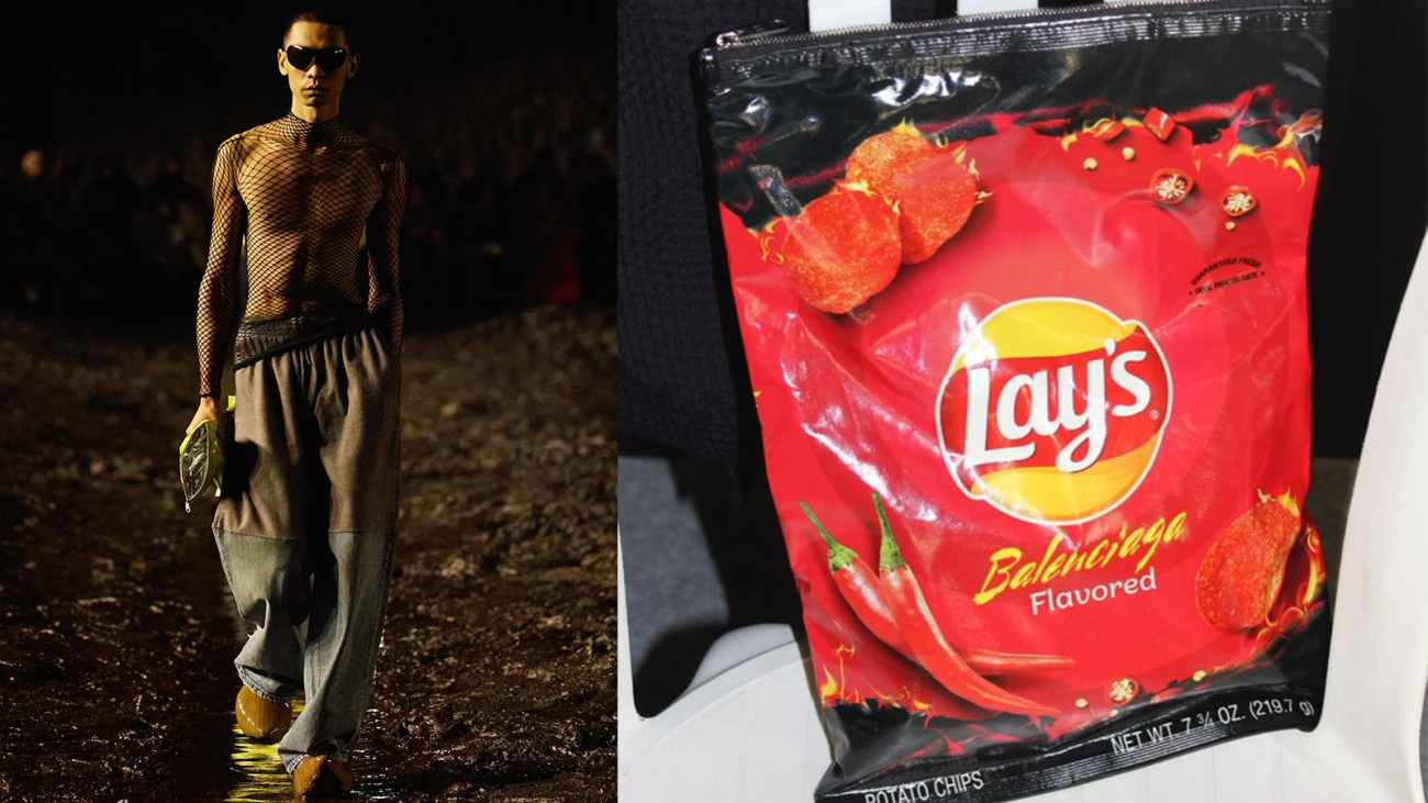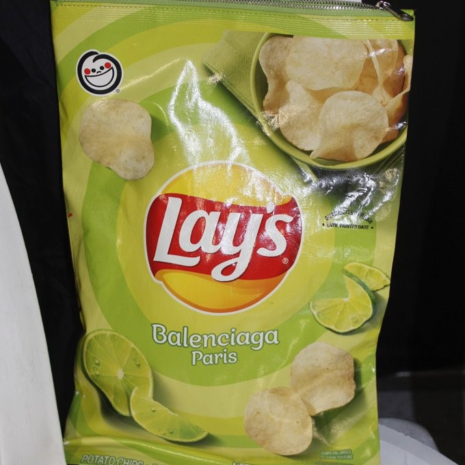 早前Balenciaga 在2023夏季時裝周中,發表了「Balenciaga × Lay's 1:1 Lay's薯片包裝手袋」。雖然手袋外形似足Lay's薯片包裝,價格卻差天共地,有傳零售價為1,800美元(約14,000港元),使不少網民驚訝「包裝袋」也可以這麼貴,原價約20元的薯片,落在名牌手中竟然升值6-700倍!