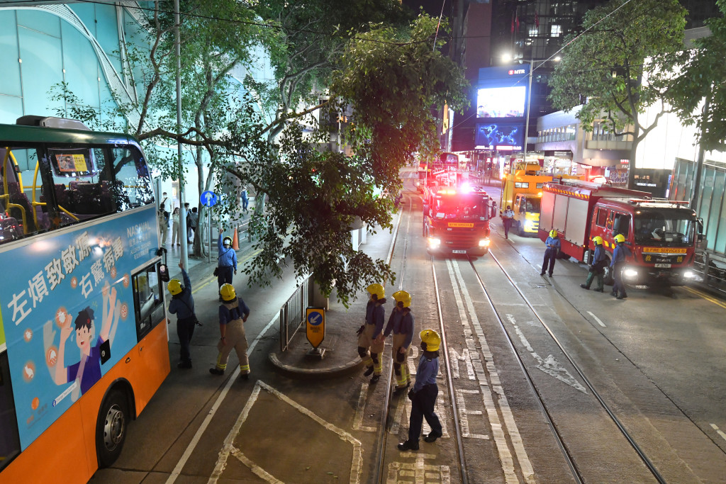 另外中環亦發生塌樹事故。晚上7時許,一棵位於德輔道中近畢打街的大樹疑不敵強風吹襲,突然折斷塌下,影響現場交通。消防接報到場,用工具鋸斷樹枝清理,初步無人受傷。