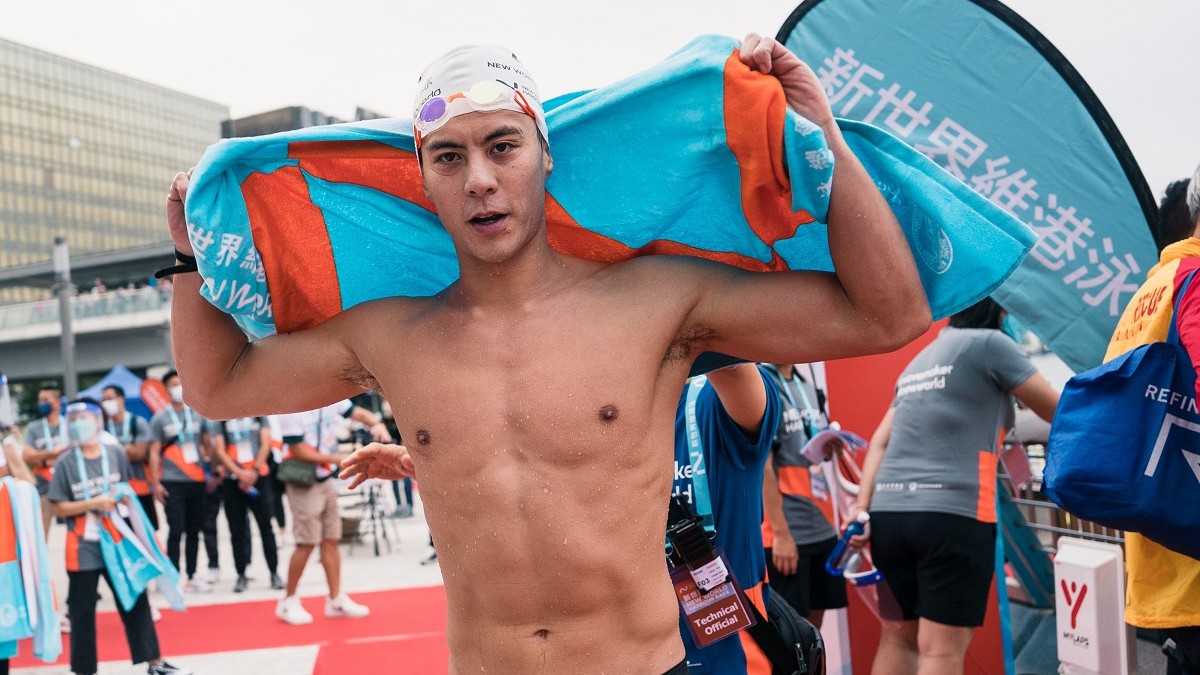 【橙訊】本地體育盛事「新世界維港泳」今日早上舉行,今年名額維持1,500人。曾經是港隊代表的藝人朱鑑然,過往出戰過亞運等大型賽事,不過轉至演藝界發展後,再接觸游泳比賽已只是在Viu TV電視劇《I SWIM》,客串飾演教練。朱鑑然今日首次「復出」,以大使身份參加香港年度盛事「新世界維港泳」,更是歷來首位大使參加競賽組,最終他以約17分、第22名完成賽事。
