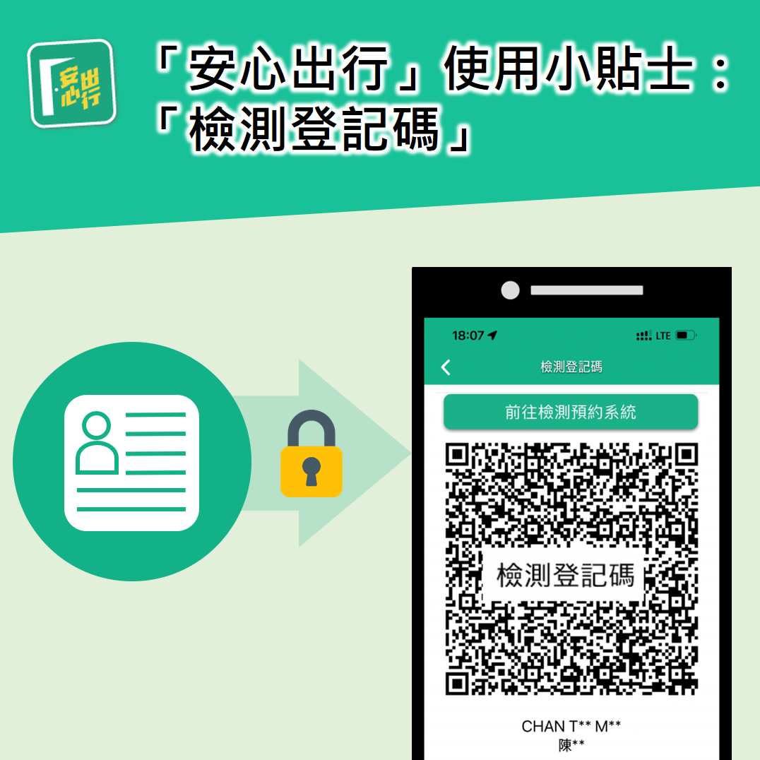 「安心出行」(3.4.2或以上版本)已經新增「檢測登記碼」功能,讓巿民預先自行填寫登記資料,以二維碼即場掃描取代人手輸入資料,簡化核酸檢測的登記流程。預先填寫的登記資料只會儲存在用戶的「安心出行」流動應用程式內,不會上傳到其他系統。