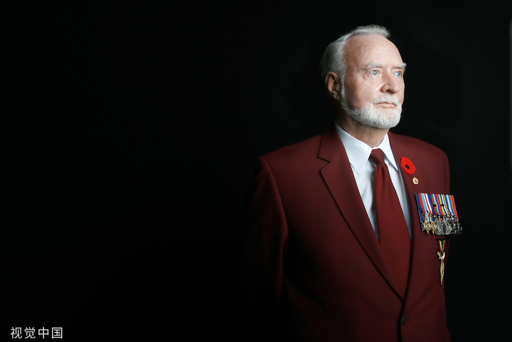 曾參與二戰的退伍軍人在胸前衣襟扣上虞美人花胸針