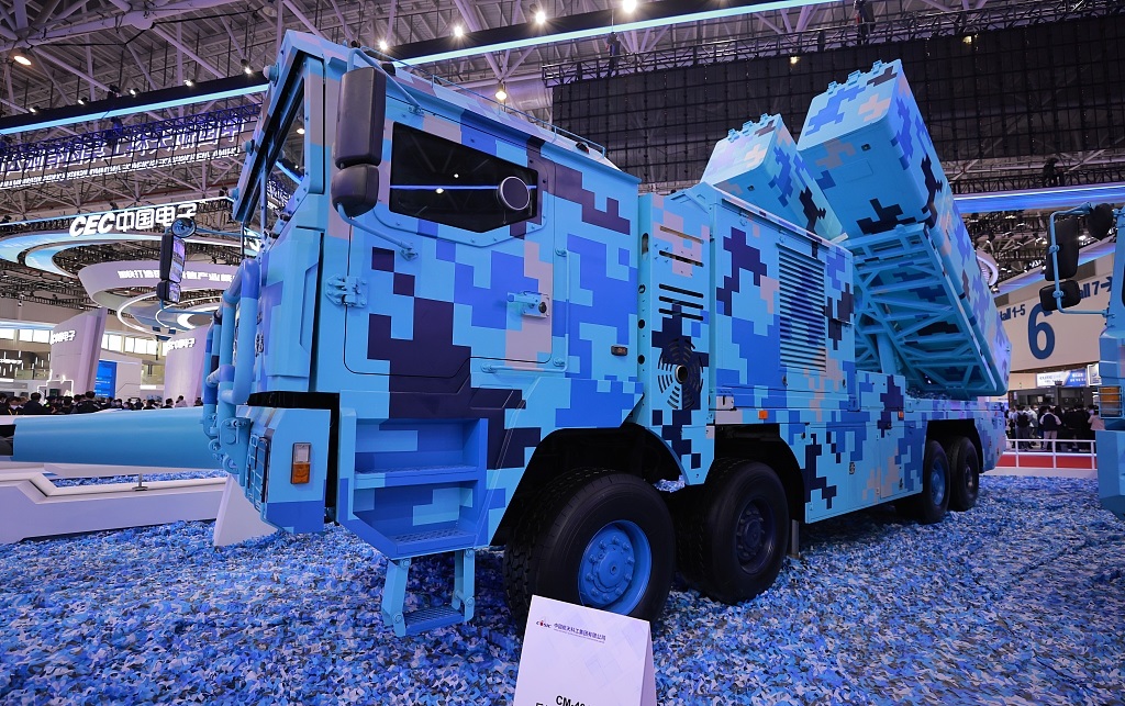 此外,今次還有多款國產激光武器展出,展示中國在前沿軍事技術方面的最新成就,例如中國航天科工集團向外界展示了LW-30激光防禦系統。根據展板介紹,其使用的激光武器輸出功率30千瓦,系統主要用於野戰防空或要地防空,具有對無人機等典型目標的硬殺傷能力,兼具光電探測與製導設備軟硬殺傷能力。該激光武器系統可單車作戰或多車組網作戰,具有打擊精度高、響應速度快、使用成本低和持續作戰能力強等優勢。