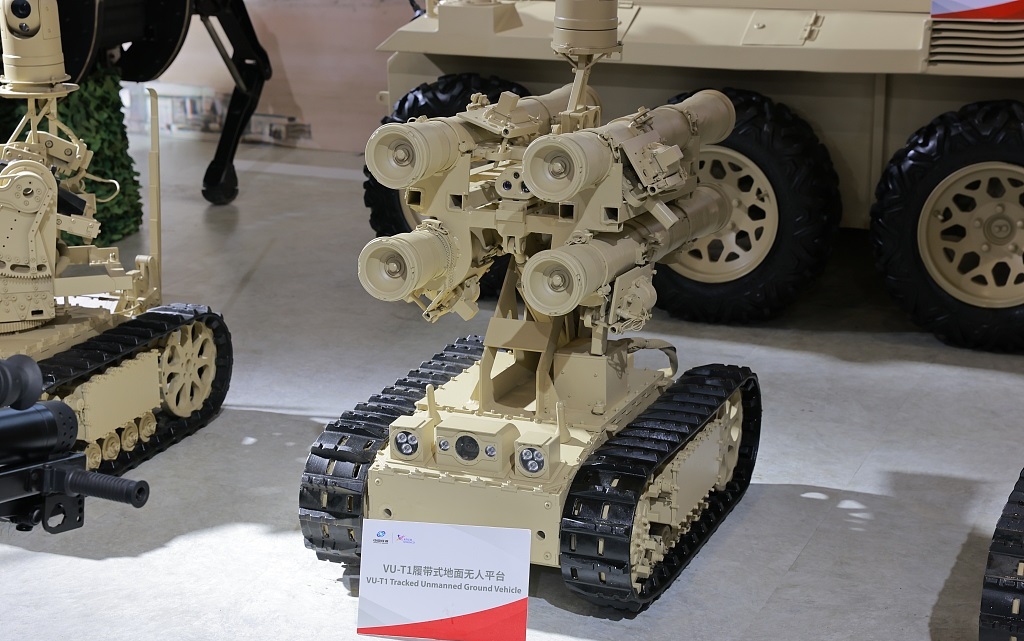 今次亦有國產坦克、裝甲車等設備,兵器工業集團今次就帶來了主戰坦克、步兵戰車、全地形車等產品,包括VT4A1主戰坦克、VT5-U輕型坦克、VN20重型步兵戰車以及3噸級輕型輪式無人地面作戰平台,VN22輪式裝甲車、ST3A型8×8輪式105毫米突擊砲以及VU-T2履帶式地面無人作戰平台等等。