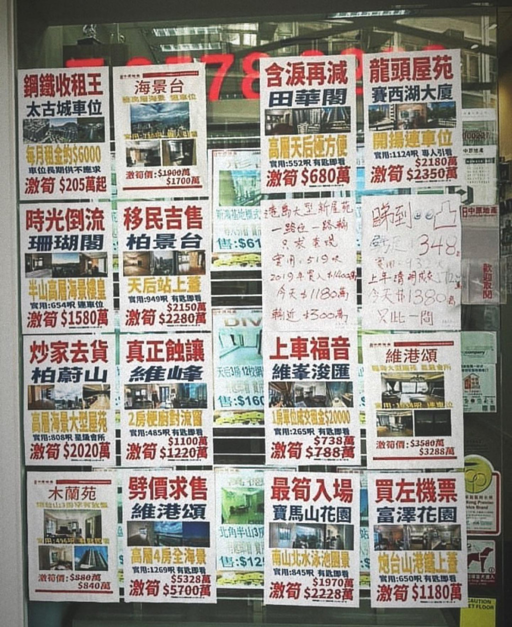事實上,要令樓盤突圍而出並成功吸引眼球,一般的「告急」、「劈價」及「最筍」等字眼已不足夠,近期則出現「無語問蒼天」、「淚已流乾」、「一路睇一路輸,只求套現」、「今生不再」、「跌到極麻木」、「生不逢時」等具特色又令人印象深刻的字句。