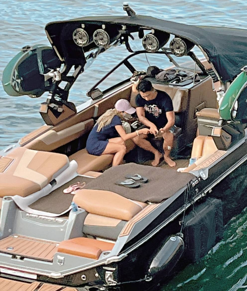 Benny與一名金髮女子結伴出海遊玩。(圖:星島)
