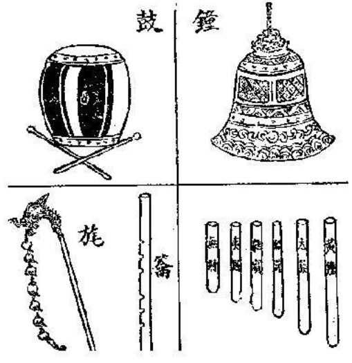 古書中記載的籥與其他歌舞器具。