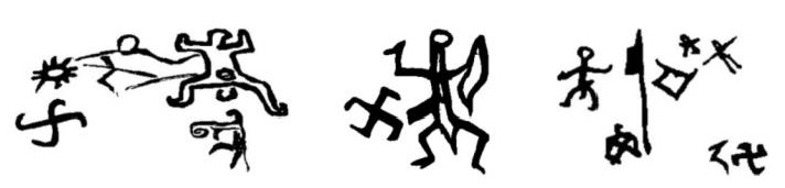 「西藏史前岩畫:萬字元+萬舞第一舞姿」,圖文來自張遠山〈華夏祭天樂舞「萬舞」解密:萬字元之舞〉。