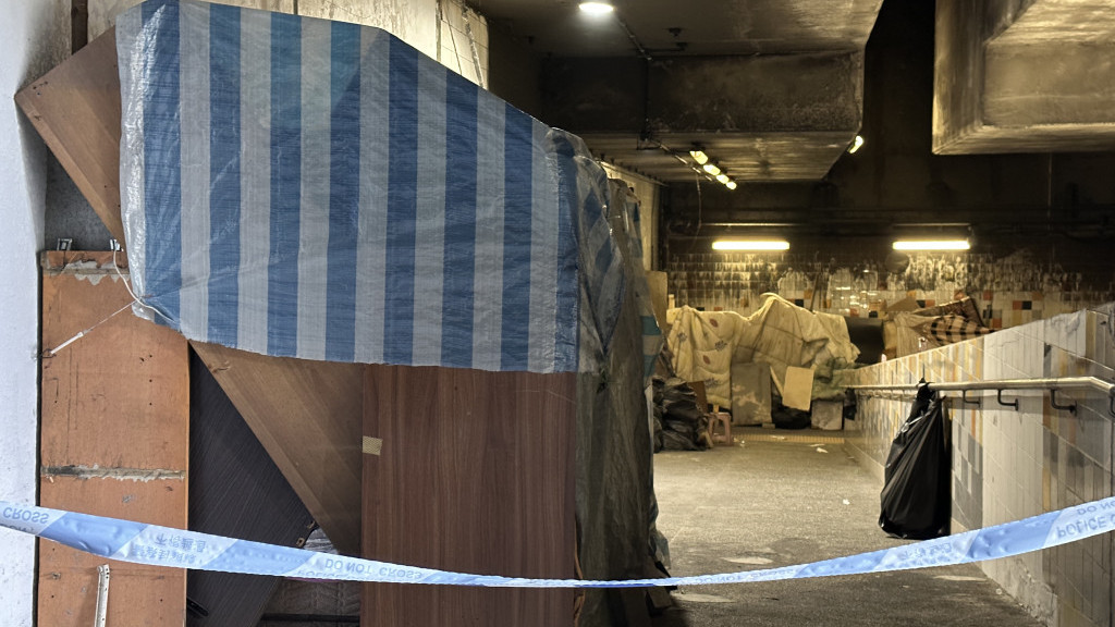 隧道內擺放了不少露宿的個人物品。