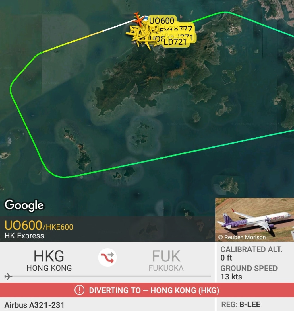 途中折返的UO600航班,最終安全降落香港國際機場。