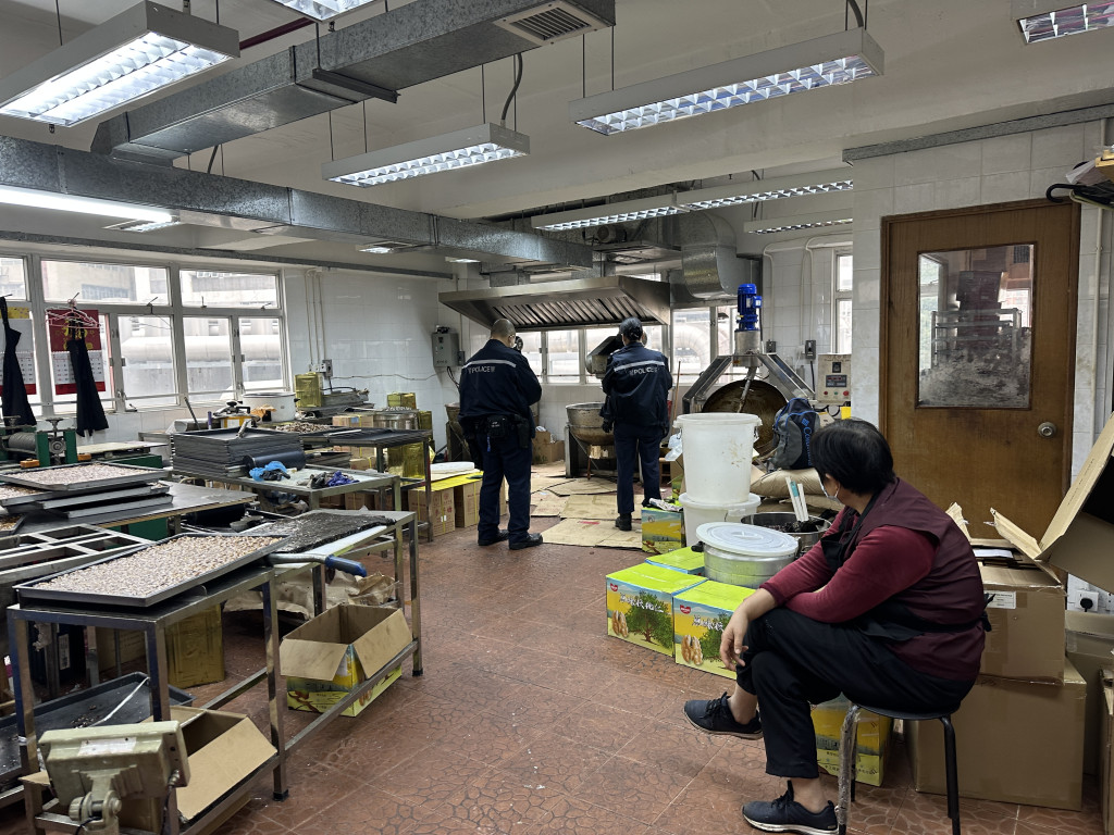 現場為一個製作中式糕點的廠房,工場內有紅棗、核桃、麥芽糖等材料,亦有一箱箱印有核桃仁的製成品,相信是製作紅棗核桃糕、花生糖之類等賀年糕點應節食品。