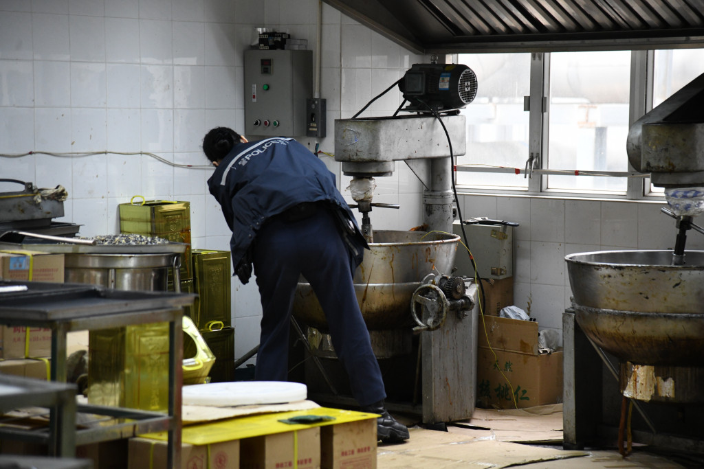 警員查看工場的攪糖機。