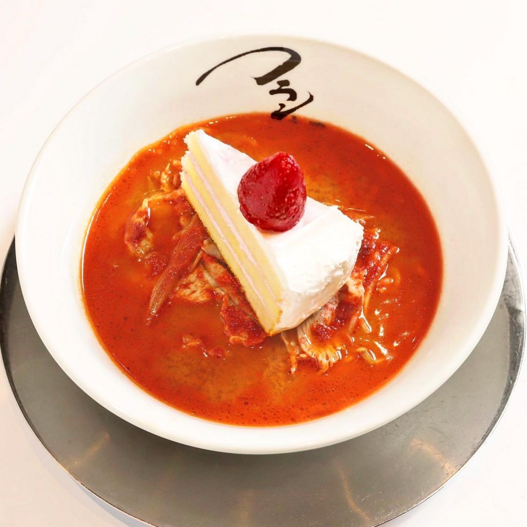 而日本「フラン軒」拉麵店敢於創作,最近再度發揮創意,推出士多啤梨蛋糕甜辣味噌拉麵,雖然畫面十分衝擊,不過亦成功吸引大批食客幫襯,更有食客大讚好吃!