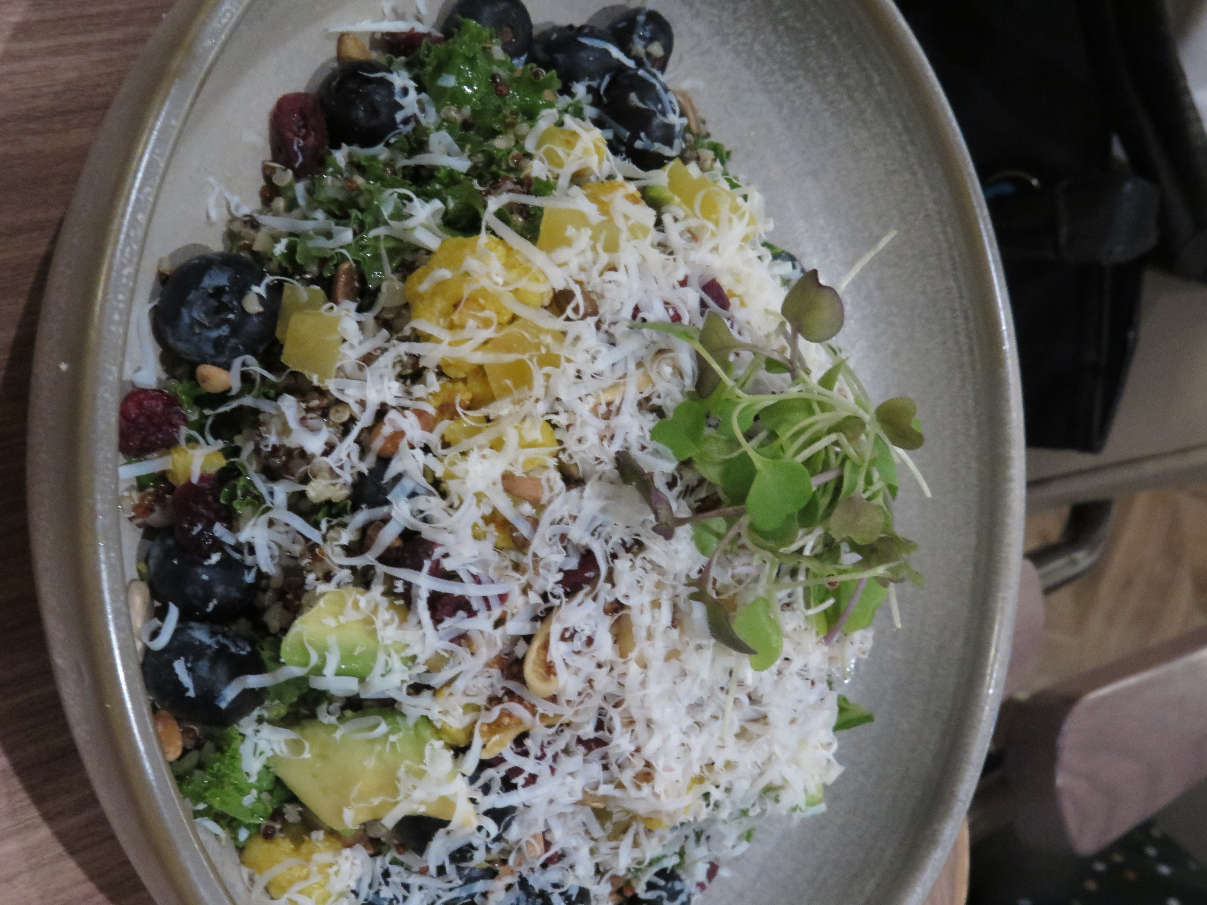 友人反其道而行,叫了一客羽衣甘藍沙律,有藜麥、牛油果、松子仁、藍莓等等,豐富得讓正在on diet的人滿足口腹之慾。
