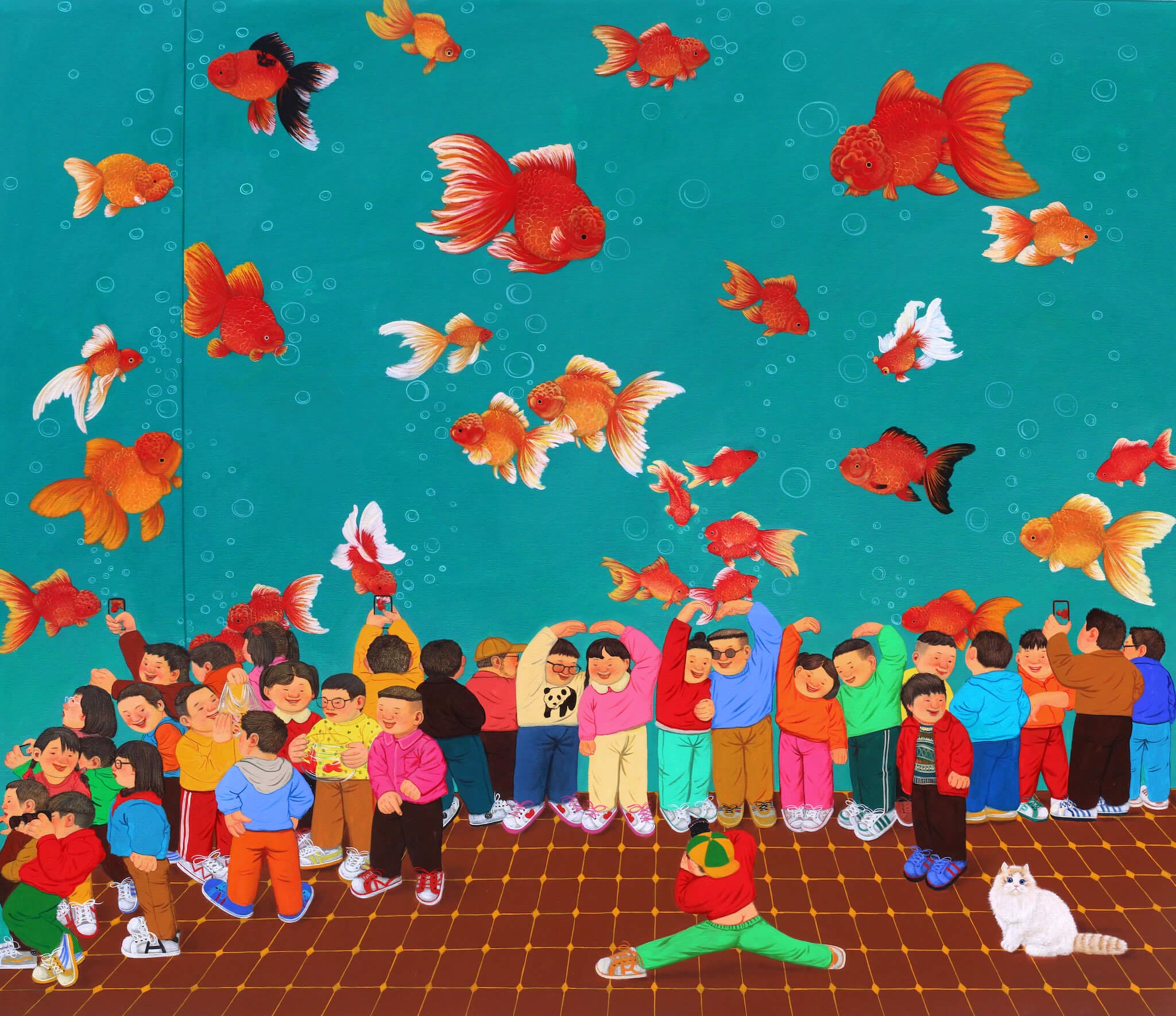 小孩子經常對周遭世界抱住天真和好奇,此形象讓張慶祝能在其作品中強調人純樸和自然的一面。畫家把現實世界與幻想結合,從自身見證時代變遷的經歷到回顧過往,試圖呈現人民在快速改變的時代洪流之中仍能圓滿自足。