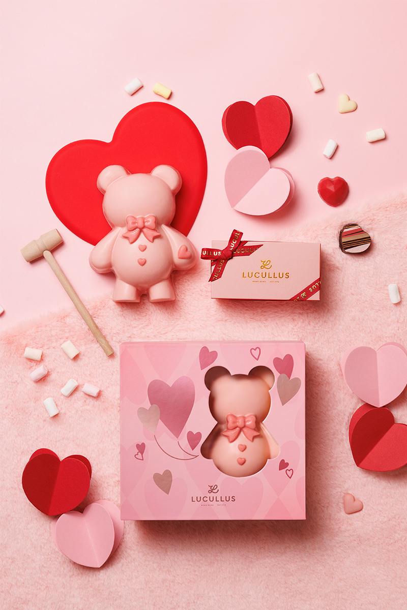 可愛粉色小熊朱古力放在相同色調的禮盒中,女士們必定喜歡。(圖:LUCULLUS龍島)