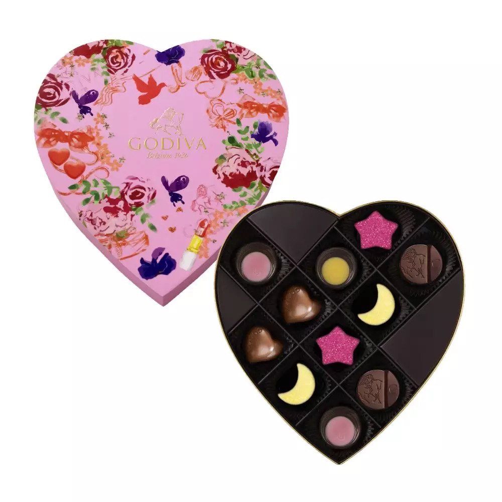 提到朱古力,又點少得港人最愛好的GODIVA呢?今年店舖推出5款朱古力禮盒,「戀人絮語朱古力」系列分別有心形和圓形禮盒,以精緻玫瑰和粉紅禮盒盛裝朱古力,外盒更印有水彩風格的圖案!另有今年全新推出的「浪漫朱古力心形禮盒」,以經典紅色和心形作包裝,最後繫上蝴蝶結,送給伴侶一定會令她甜入心!