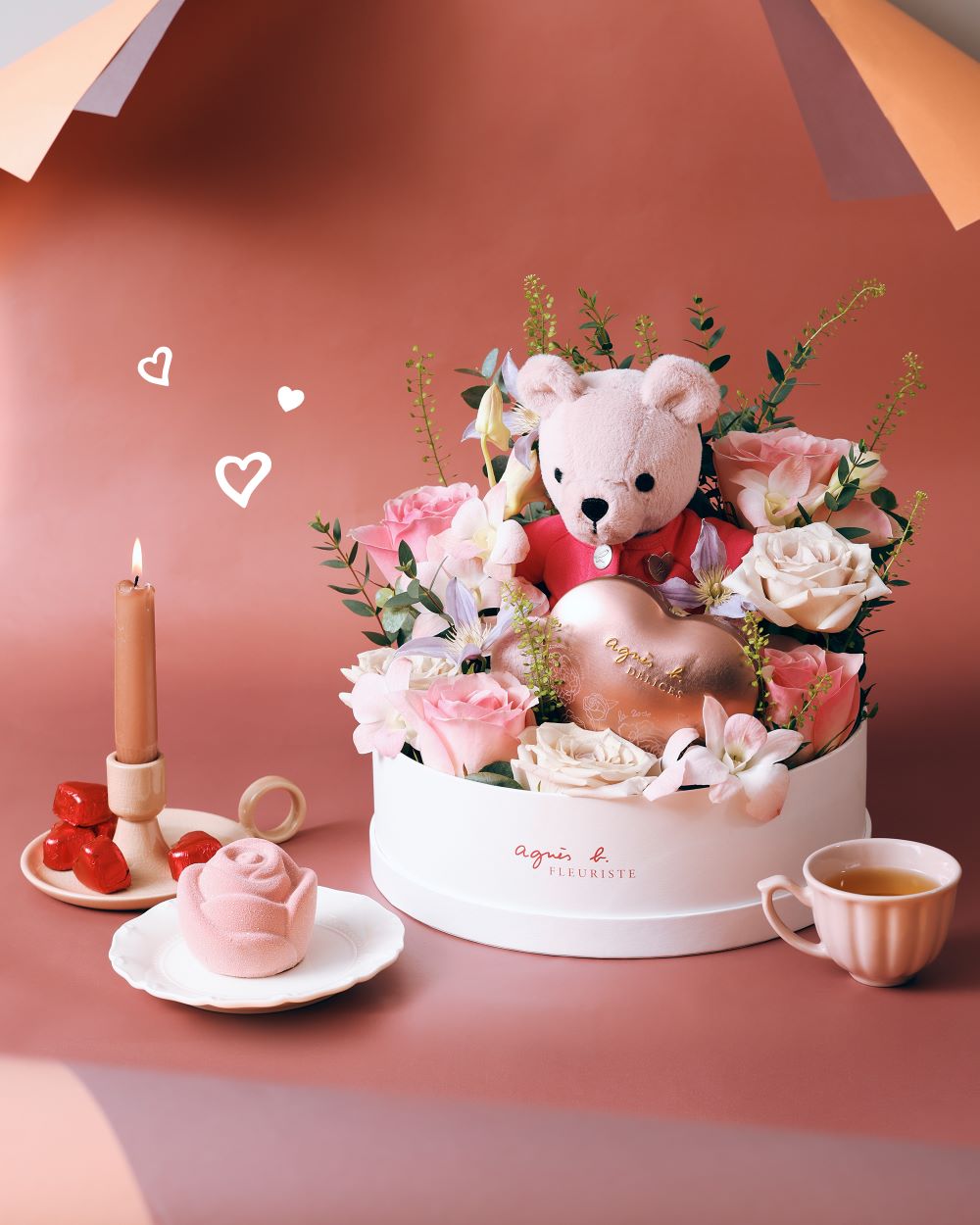 一次過送上鮮花、朱古力及毛公仔,滿足3個願望。(圖:agnès b)