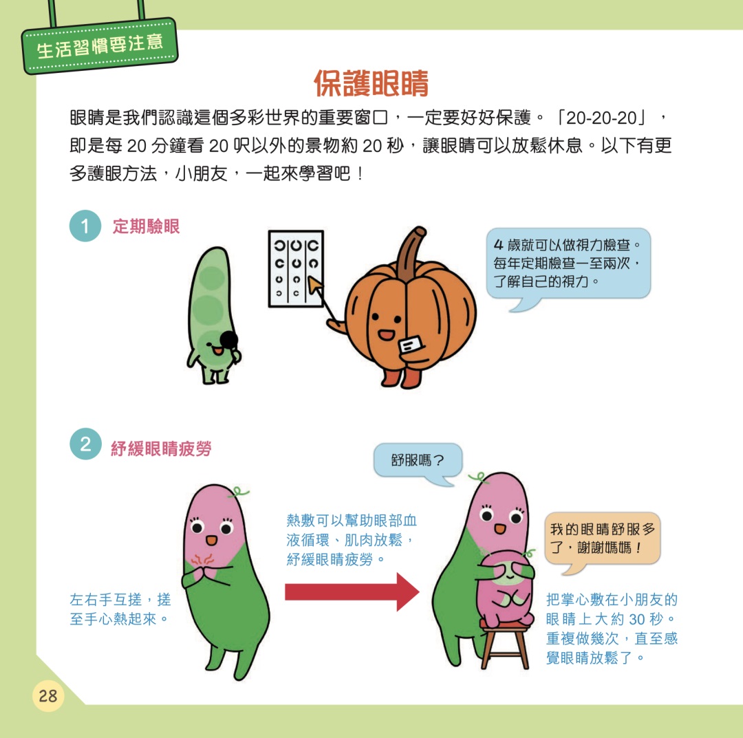 有趣的圖畫,吸引孩子從圖中學習健康知識。