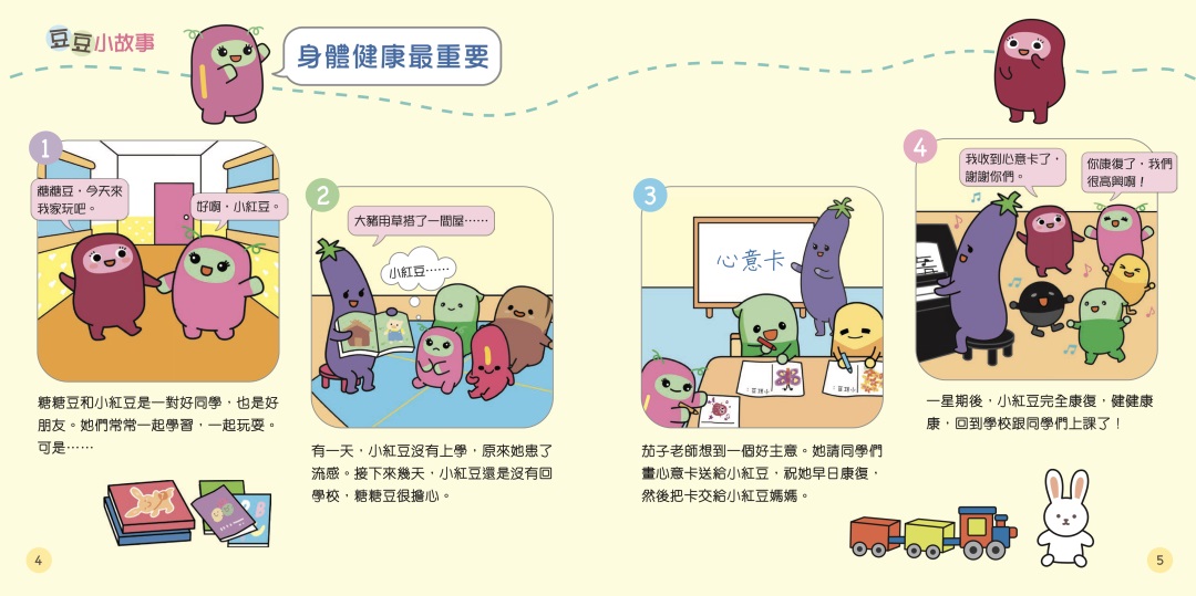 每冊以「豆豆小故事」引入,先給孩子說說關於保持身體健康的故事,熱熱身。