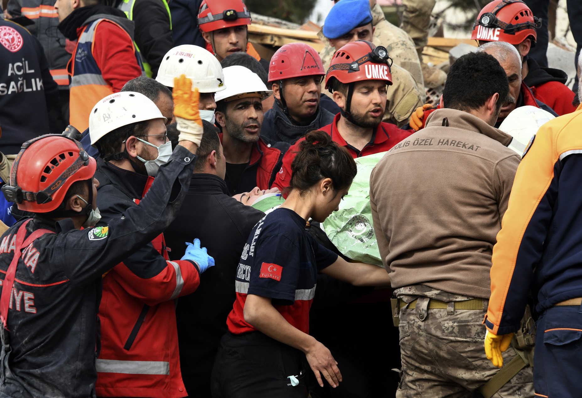 馬拉蒂亞省災區,救援人員搬運傷者。