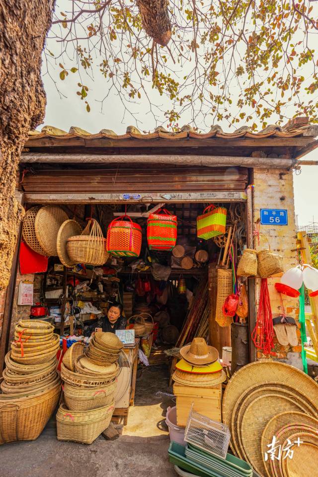 赤坎老街改造並新辦200多家日用雜貨及古玩特色商店,豐富了遊客體驗。圖為擺放整齊的竹器店