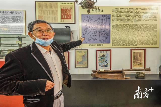 今年70歲的廣州灣歷史民俗館館長胡賢光向遊客講述近代廣州灣歷史,這裡成為愛國主義教育基地