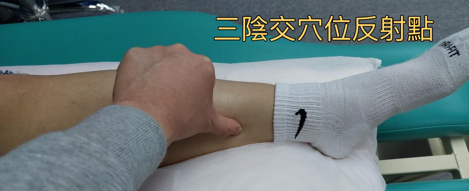它在我們腳踝內側四隻手指對上的位置。倘若女士在月經週期有水腫的問題,也可以按這個穴位。按壓三分鐘為一次,每日約三次便可。