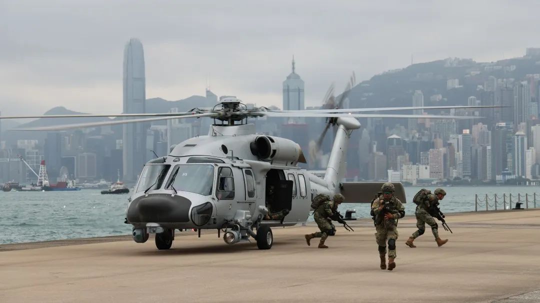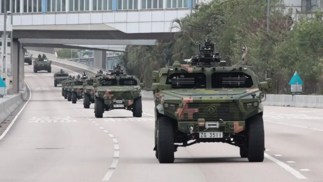 上午11時許,陸上機動梯隊完成緊急出動,編隊從新田軍營出發,繞新界、九龍、港島進行巡邏,並在昂船洲大橋與直升機編隊匯合,開展陸空聯合巡邏。