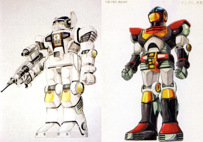 高達最初的設計,還留有超級系機械人的感覺。