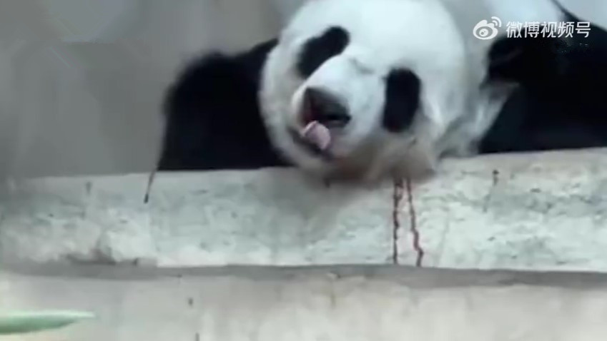 大熊貓「林惠」在網民的直播中,被發現鼻部流血,並滴到石平台上。