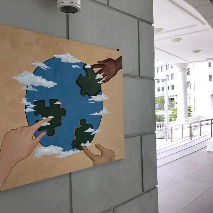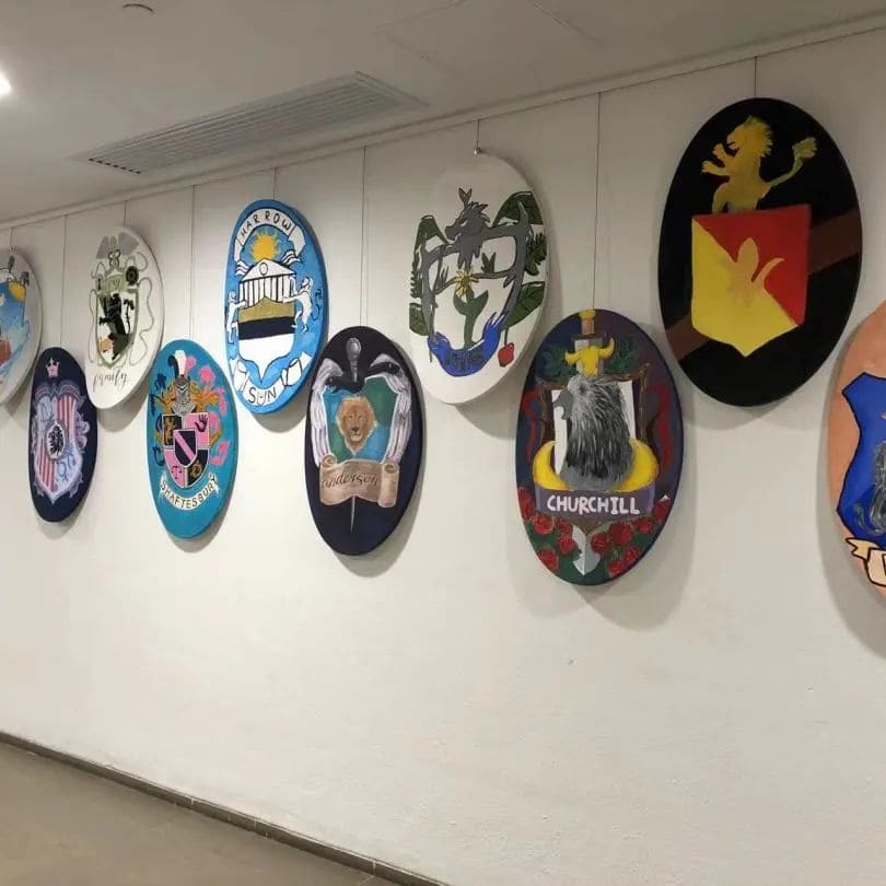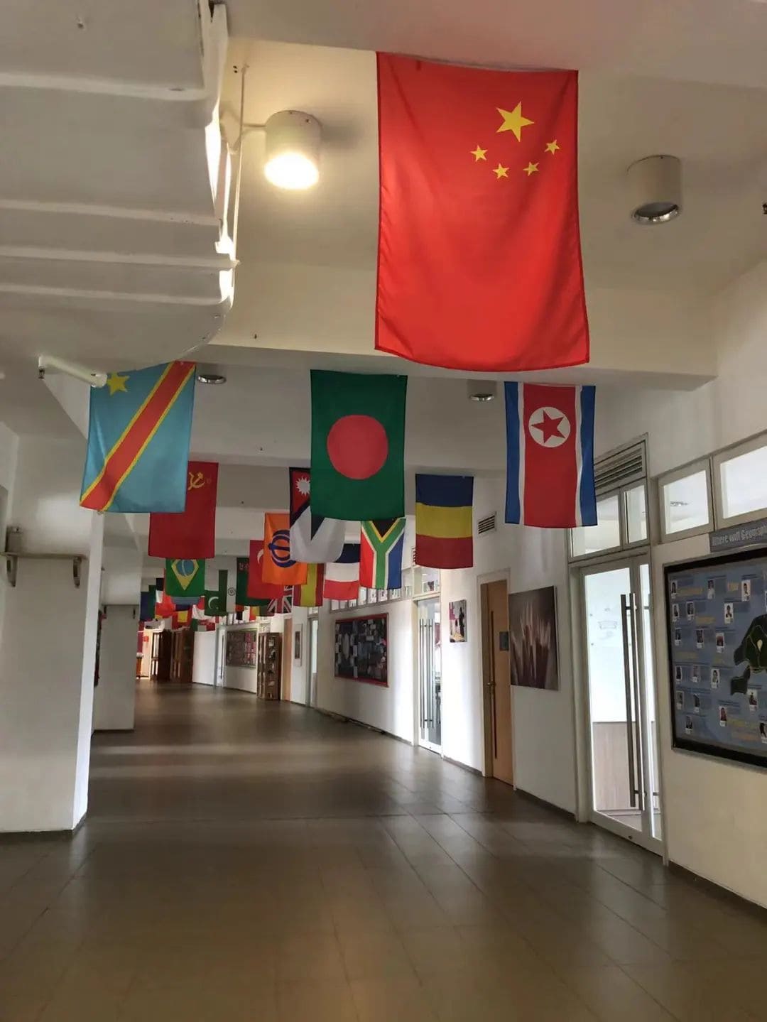 也許是因為校舍大樓建築物向兩側無限延伸的開闊空間感,整個校園走下來——從一邊的幼稚園部到另一邊的中學部,女王並沒有覺得時間很長,反而還會時不時地駐足欣賞校園內隨處可見的藝術創作,彷佛置身畫廊。