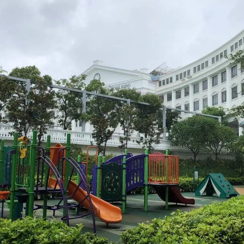 位於幼稚園部入口前方的兒童遊樂場和小型球場。(女王實拍)