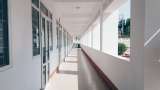 校園內部,新月形主樓及操場一側。(女王實拍)