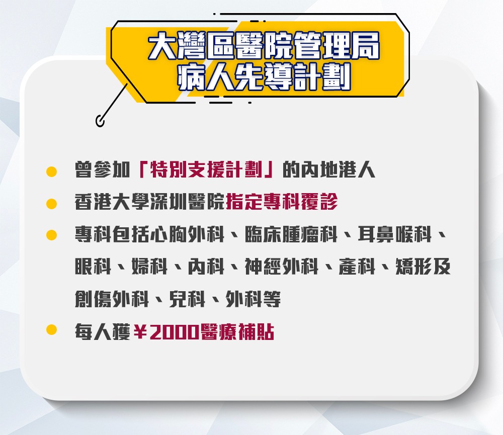 灣區生活|大灣區醫管局病人先導計劃 直接資助2000人民幣