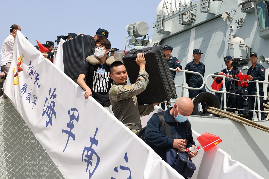 因應蘇丹衝突加劇,解放軍日前緊急調派正在亞丁灣執行護航任務的「南寧艦」、「微山湖艦」,趕赴蘇丹,協助撤走中國公民。