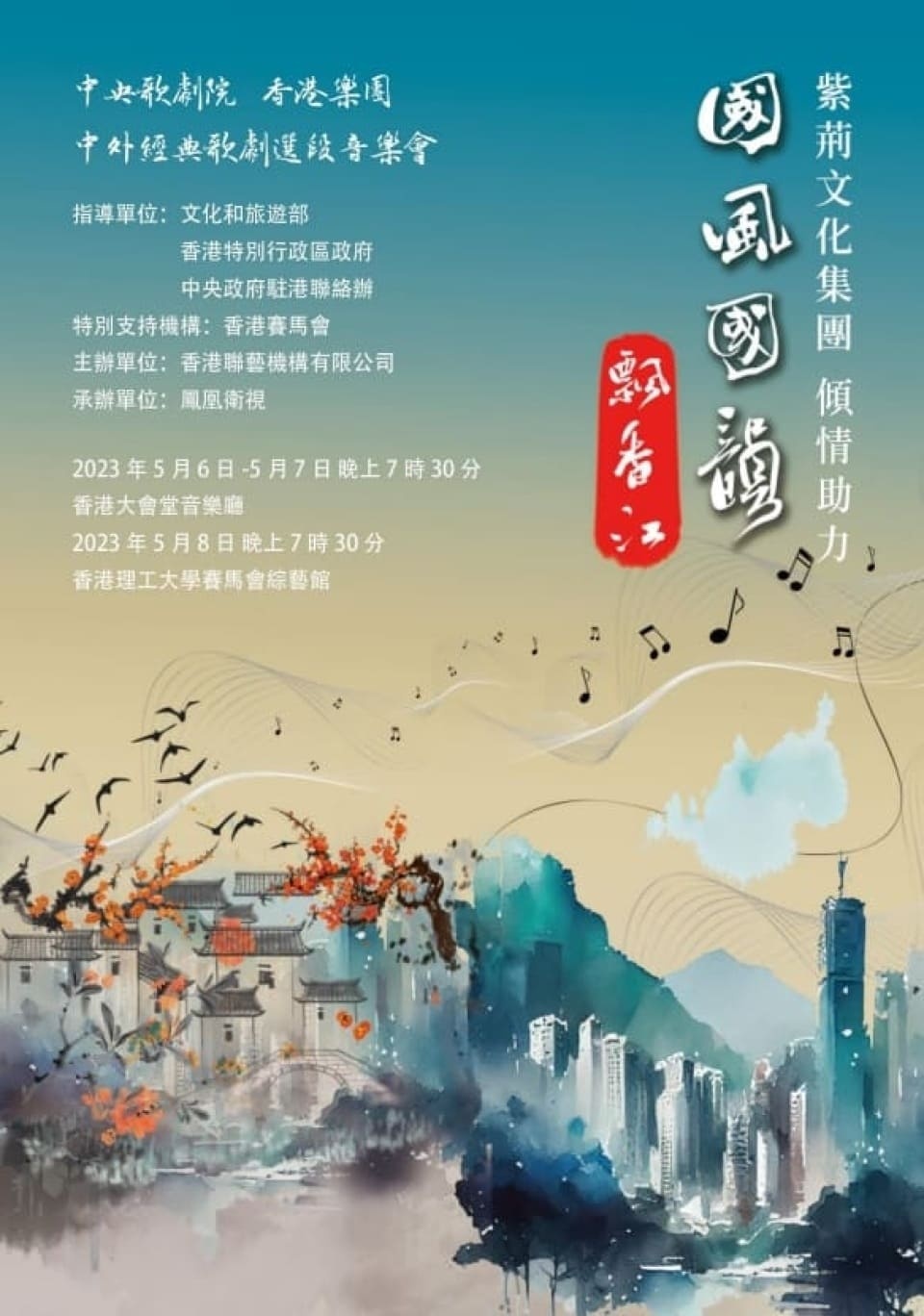 中央歌劇院作為「國風國韻飄香江」這一全新品牌創建後首個來港的內地國家級藝術院團,將攜手香港新銳職業樂團香港樂團,並特別邀請世界著名歌劇表演藝術家莫華倫,為香港觀眾奉獻中外歌劇選段盛宴。由著名女高音歌唱家、中央歌劇院副院長么紅領銜的中央歌劇院的藝術家,在音樂會上將演唱著名民族歌劇《白毛女》、《洪湖赤衛隊》、《紅色娘子軍》中的經典唱段「北風吹」、「洪湖水浪打浪」以及西方經典歌劇《卡門》、《茶花女》、《圖蘭朵》、《弄臣》等中的著名唱段。