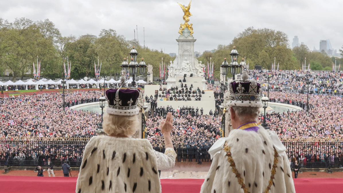 英國王室在社交專頁發放查理斯三世與卡米拉,在白金滿宮露台接受民眾祝福。