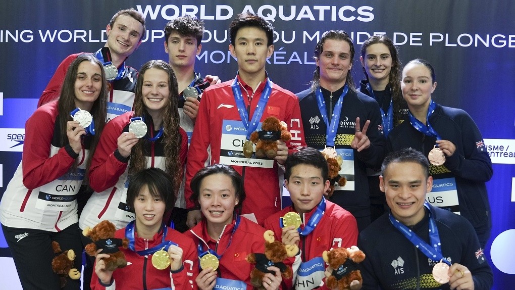 【橙訊】跳水世界盃蒙特利爾站於當地時間周日(7日)結束,國家隊包攬賽事全部9面金牌。在最後一個比賽日,國家隊奪5金1銀,其中全紅嬋在女子10米高台決賽的第四跳,挑戰高難度的207C動作,以零瑕疵發揮完美入水,獲得驚人的6個10分,總得分高達99分。最後,她力壓隊友陳芋汐贏得金牌。